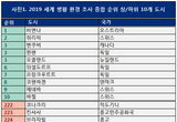 머서, 2019 세계 삶의 질·생활환경 조사 도시 순위 발표