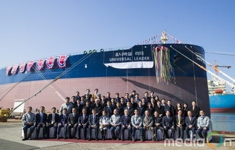 대우조선해양 옥포 조선소에서 개최된 유니버셜 리더호 명명 취항식에는 유창근 대표이사를 비롯해 황호선 한국해양진흥공사 사장, 정성립 대우조선해양 사장 등 관계자 100여명이 참석했다.