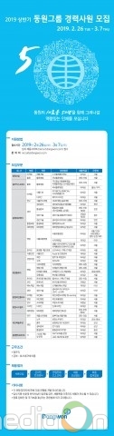 동원그룹이 2019년도 상반기 경력사원을 모집한다고 지난 26일 밝혔다.