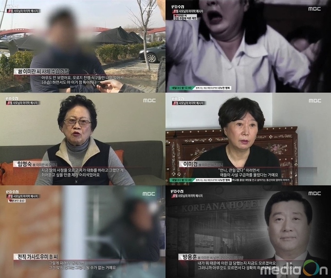 방용훈 코리아나 호텔 사장의 부인 고 이미란 씨 자살 사건을 다룬 이날 ‘PD수첩’의 보도는 충격적이었다.