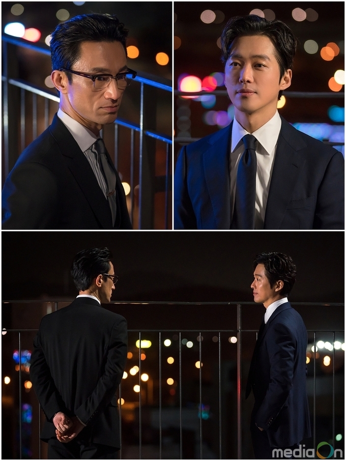 공개된 사진 속 김병철은 긴장한 모습을 엿보이고 있는 반면, 남궁민은 짐짓 여유로운 미소로 한발짝씩 다가서며 김병철의 표정변화를 살피는 듯한 형국이다. 하지만 두 사람 모두에게서 서로의 속내를 감추고 상대가 지닌 패를 읽어내려는 숨 막히는 심리전을 펼치고 있음이 느껴진다.