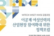 (사)한국여성공학기술인협회(이하 WITECK), 한국여성과학기술인지원센터(이하 WISET), (사)대한여성과학기술인회(이하 KWSE)가 15일 서울 삼정호텔 제라늄홀에서 ‘이공계 여성인력의 산업현장 참여확대 위한 정책포럼’을 공동으로 개최한다. 이번 정책포럼은 급변하고 있는 미래 사회의 고도화된 산업현장에 여성R&D인력의 활용 방안을 모색하고 창의적 아이디어와 기술역량을 보유한 여성R&D인력과 산업계와의 시너지 효과를 창출하기 위한 다양한 의견을 수렴하기 위해 마련되었다. 이날 공동 정책포럼에서는 포럼을 주관하는 3개 기관의 발제발표에 이어 안현실 한국경제 논술위원을 좌장으로 고명숙 한국전력기술 상무, 김숙경 한국표준과학연구원 화학의료표준본부 본부장, 노민선 중소기업연구원 연구위원, 손미진 수젠택 대표, 이영민 숙명여자대학교 교수 등 산·학·연 전문가들이 패널토론에 참여한다. 이 공동 정책포럼을 통하여 산업현장에서의 여성R&D인력 활용 현황과 참여증진을 위한 지원 활동에 대한 포괄적인 정보를 공유하고 보다 많은 여성이 산업현장으로 진출할 수 있는 기반을 마련하기 위한 실질적인 정책 제언의 장이 될 수 있을 것으로 기대된다. 이 공동 정책포럼